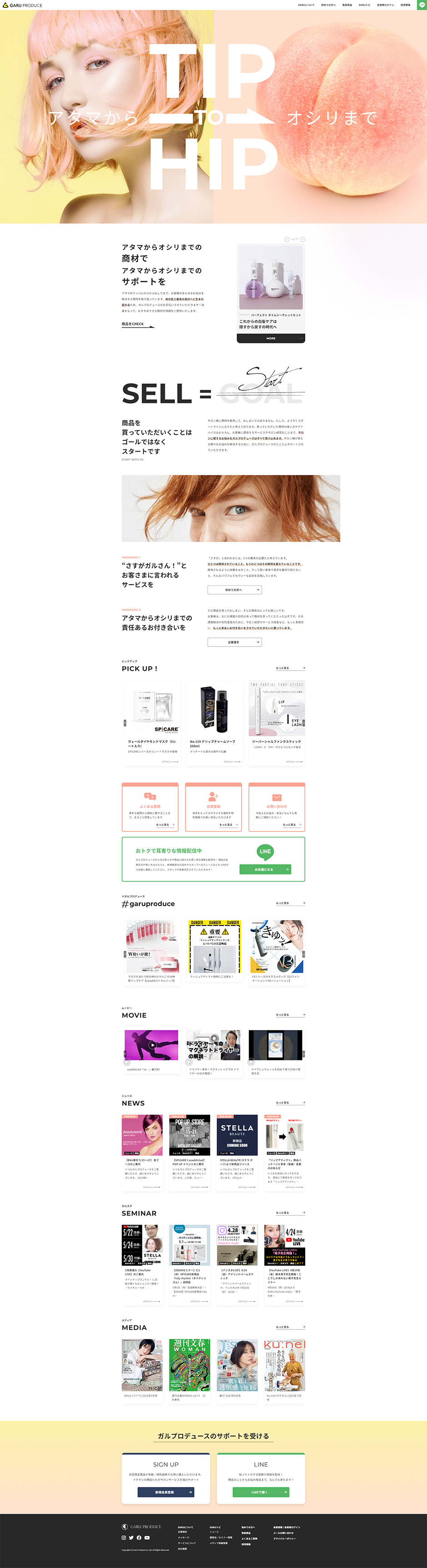 From head to toe. GARU support system is easy to understand On the top page, GAL's top selling products are placed to make it easy to understand the flow line to the purchase process. In addition, to make it as easy as possible for end users to receive support from Gull, we have placed the most obvious line of communication to the LINE, thereby lowering the hurdle to contact us.